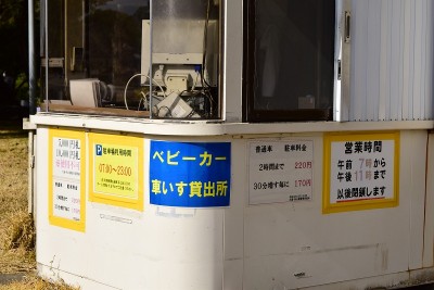 駐車場にて、車椅子(2台)とベビーカー(1台)の無料貸し出しを行っております。