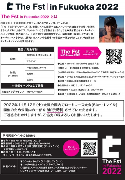 11月12日(土)に「The Fst in Fukuoka 2022」が大濠公園内周回路で行われます。