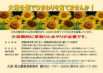 ○大濠公園で「ひまわり」を育てませんか?(5/7募集開始!)○