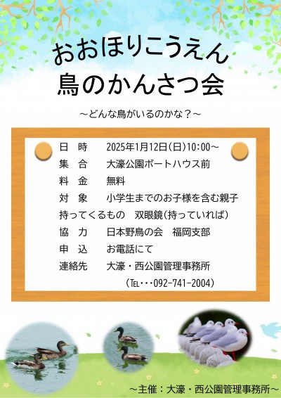 ○大濠公園鳥のかんさつ会○開催のお知らせ