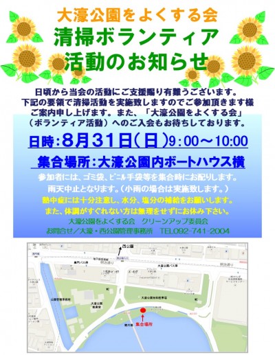 ■「大濠公園クリーンアップ隊」8月度清掃ボランティア活動