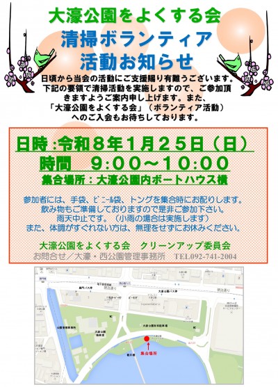 ■「大濠公園クリーンアップ隊」1月度清掃ボランティア活動