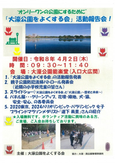 「大濠公園をよくする会」 の年間活動報告会が下記日程で行われます。